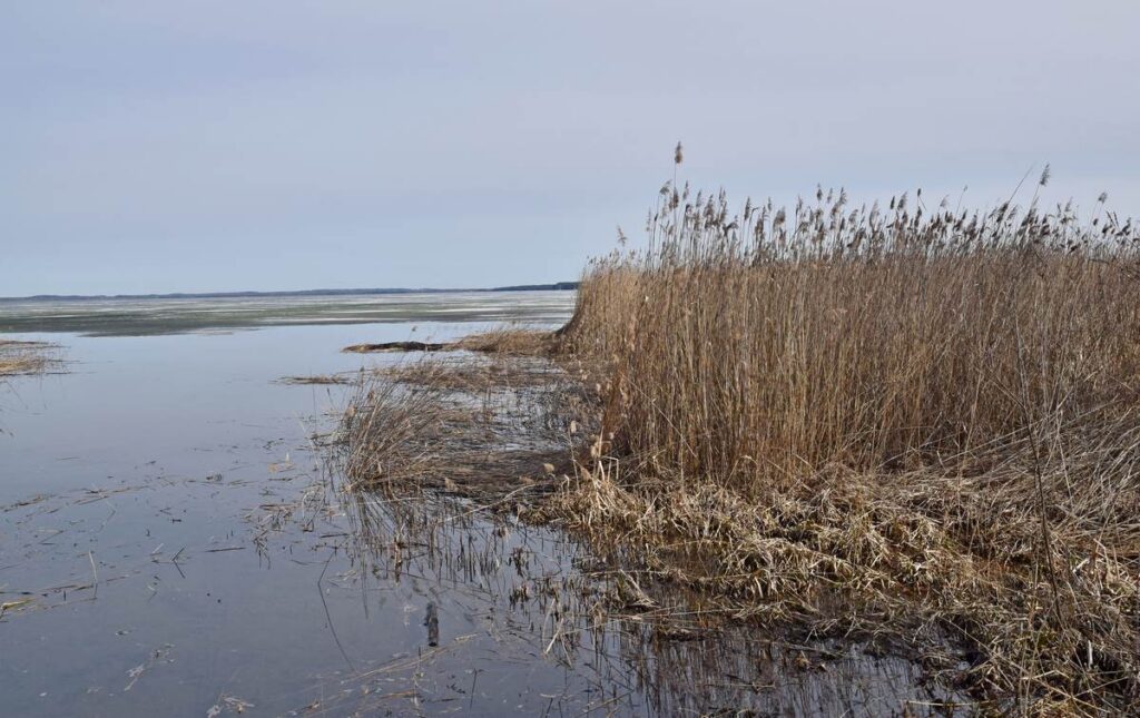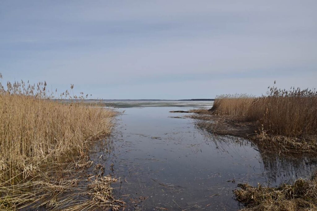 А вот и Нарочь, среди тростника — полоска воды. Да и та вся в упавших стеблях.