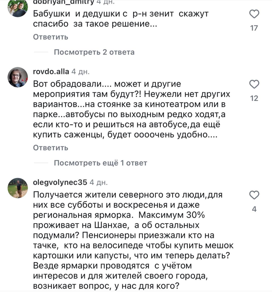Под публикацией в социальных сетях о переносе торговли с Центральной площади на улицу Георгиевскую жители оставляли комментарии, выражая своё мнение.