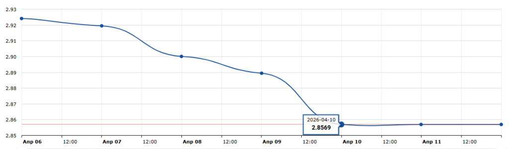 Курс доллара за прошлую неделю потерял -2,71% и к началу года вернулся в красную зону с понижением на -1,58%. Итоговые котировки пятницы USD/BYN 2,8569. Объём торгов, хотя и не достиг максимальных значений, но превысил средние величины и за неделю составил 71,667 млн долларов США, что свидетельствует о спросе на иностранную валюту.