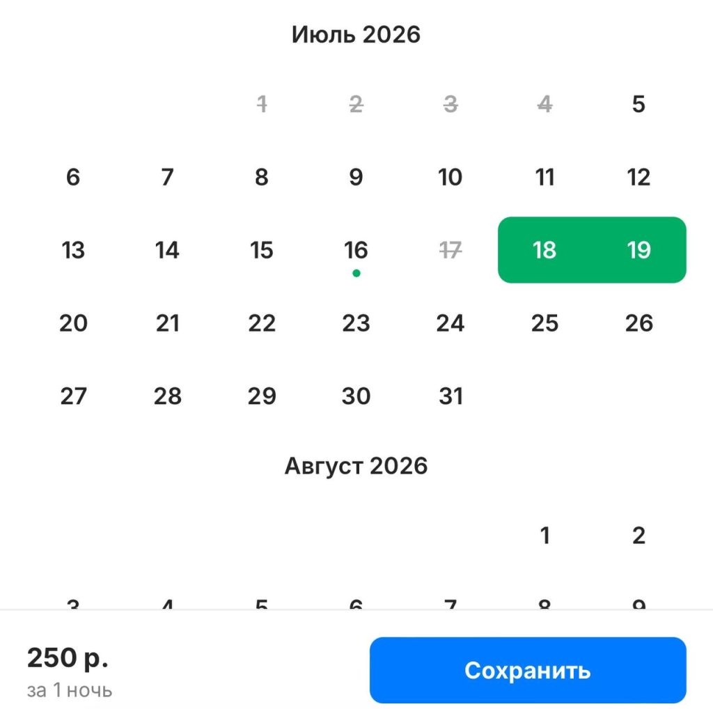 Варианты и наличие свободных дат