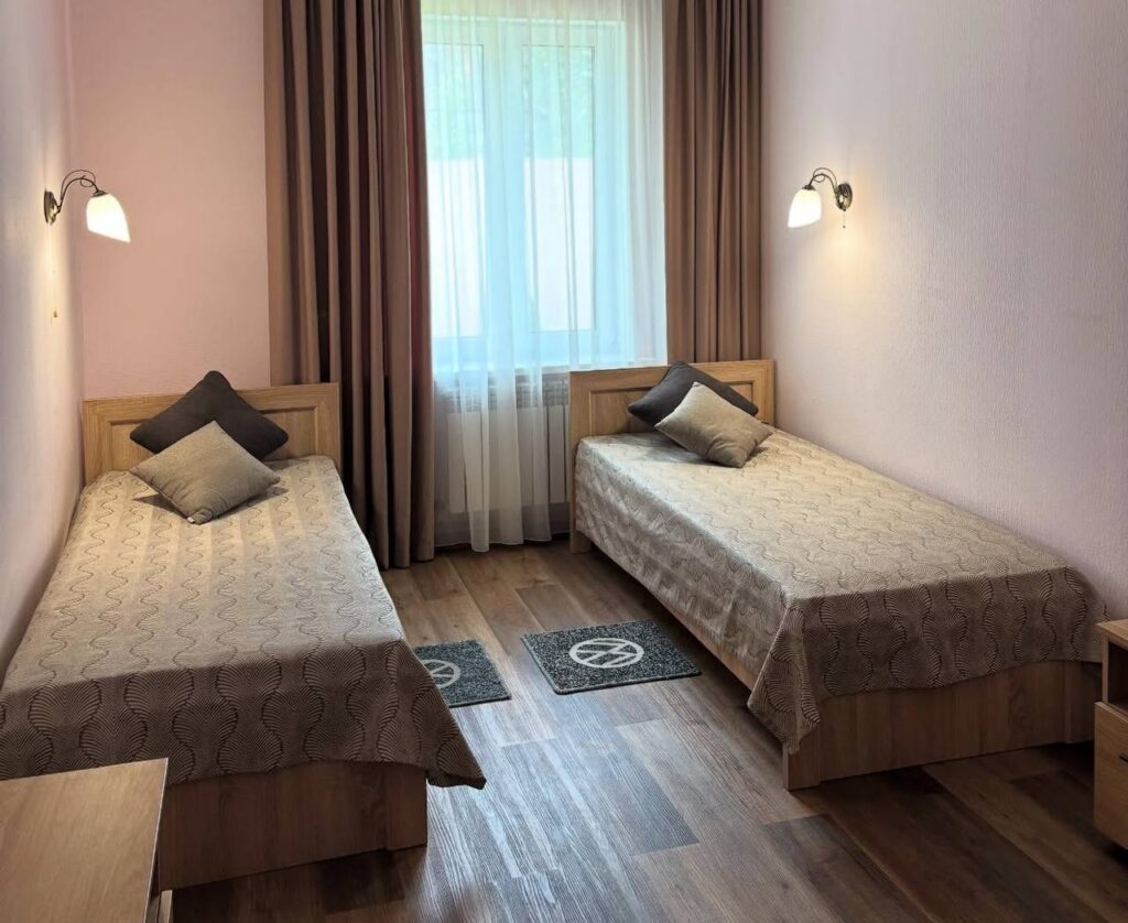 Гостевой домик предлагает гостям одноэтажный уютный дом на 9 человек, оборудованный всем для комфортного отдыха. Для удобства посетителей — санузел с душевой, укомплектованная кухня, горячая вода и кондиционер. Отдыхающие могут расположиться в трех спальных комнатах.