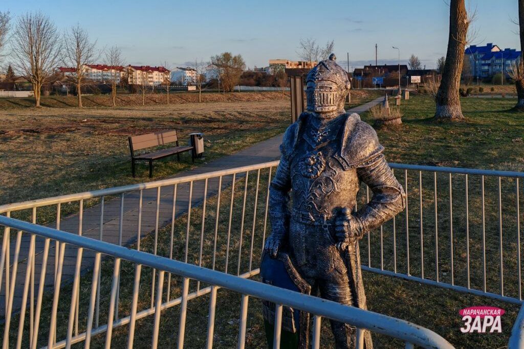 В Мяделе фигуру рыцаря, которая располагалась у спасательной станции, переместили ближе к озеру. Теперь она стала более заметной для жителей и гостей города, пишет narachanka.by.