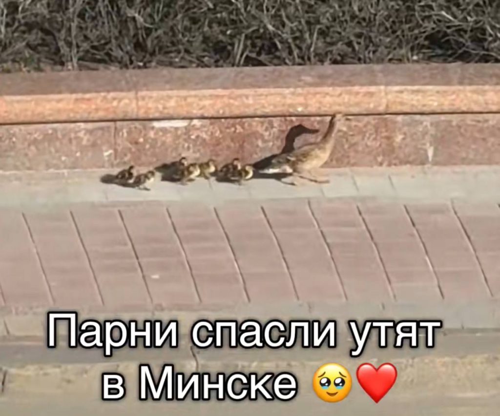 Случайно снятое видео, как трое парней помогли перейти проезжую часть утке с утятами в Минске, разлетелось в ТикТокe.