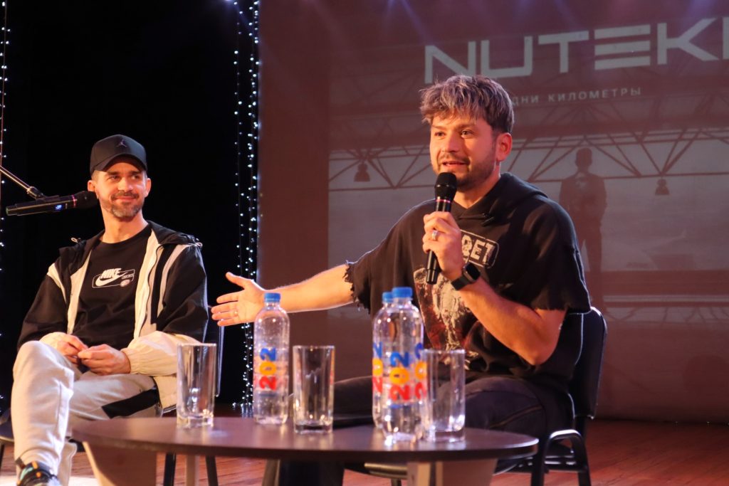 Вопросов было много. Ребята действительно не стеснялись. Спрашивали о хобби Михаила и Александра, о том, как Nuteki набирают в группу новых музыкантов, об интересных курьёзных случаях в гастрольной жизни, о том, что помогает писать песни и как долго они пишутся.