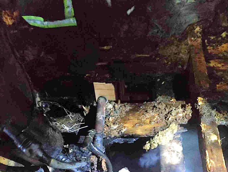 Местный житель увидел дым из-под крыши бани на соседском подворье и позвонил в службу спасения. Спасатели выехали на место и потушили пожар. В результате огнём повреждено перекрытие на площади одного квадратного метра.