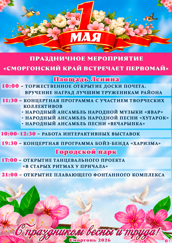 Насыщенная программа мероприятия «Сморгонский край встречает Первомай» ждёт сморгонцев и гостей города в первый день мая.