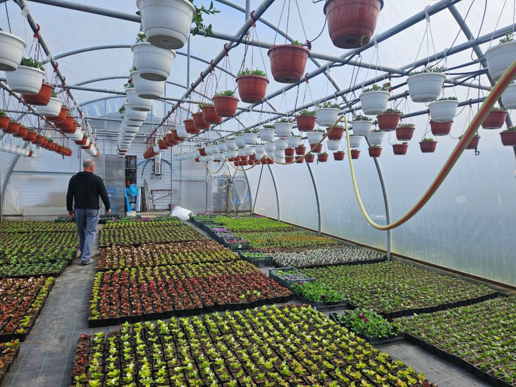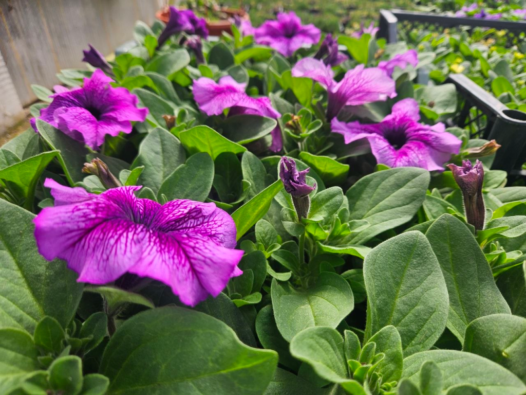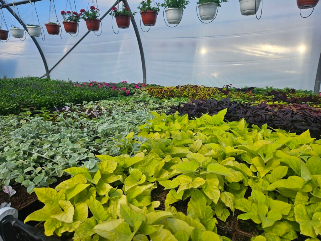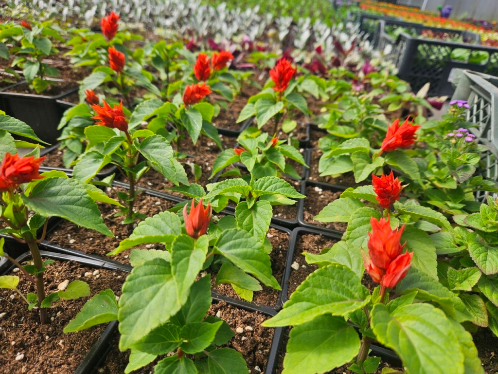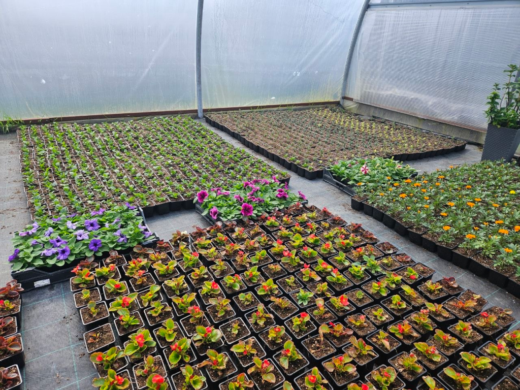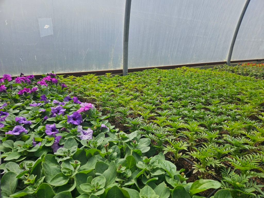 Петуния, сурфиния, бегония, бархатцы, георгины, гвоздика, вербена, гацания — это далеко не весь ассортимент цветов, выращенных здесь.
