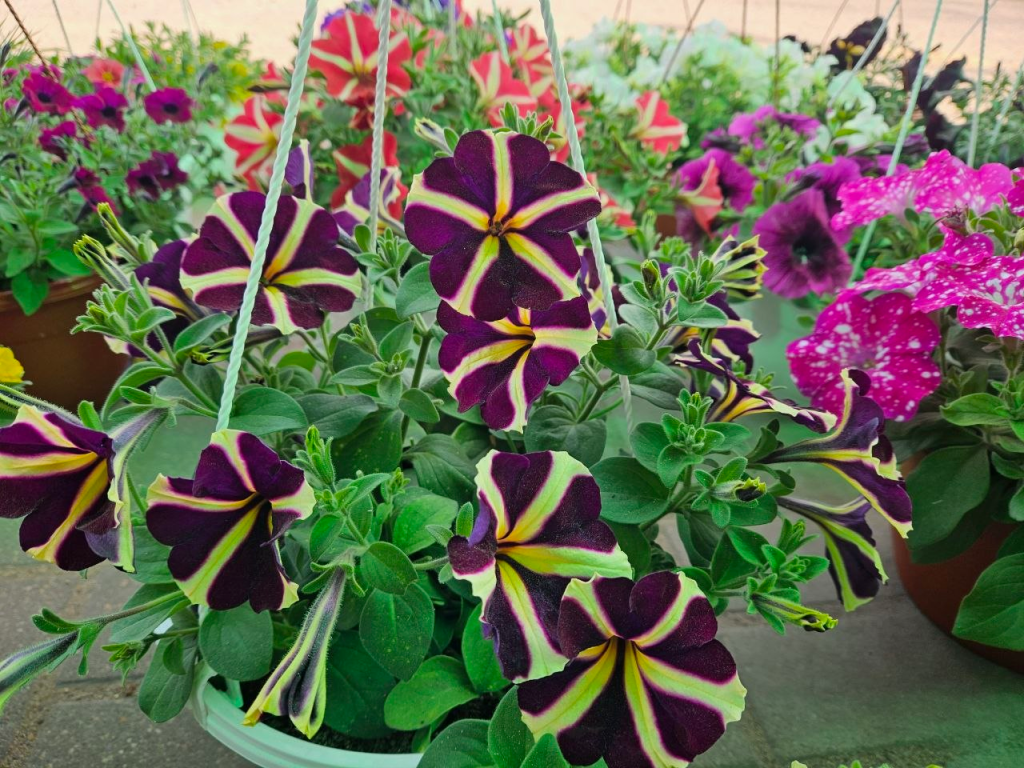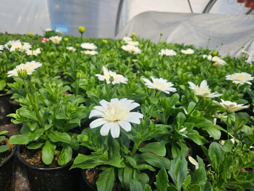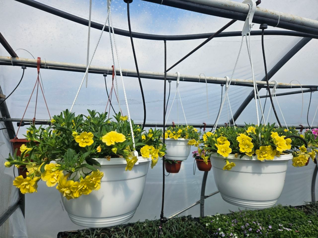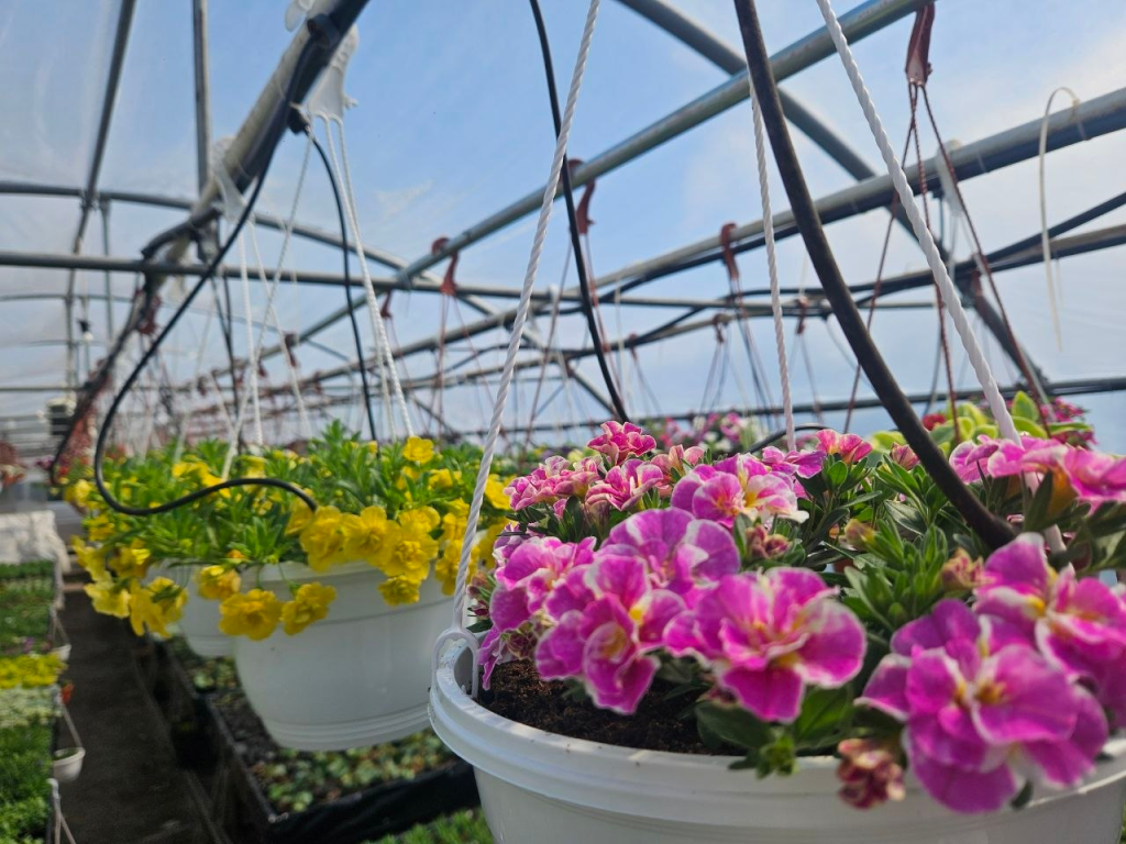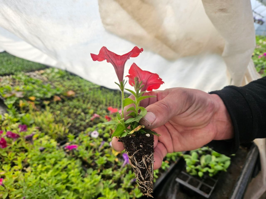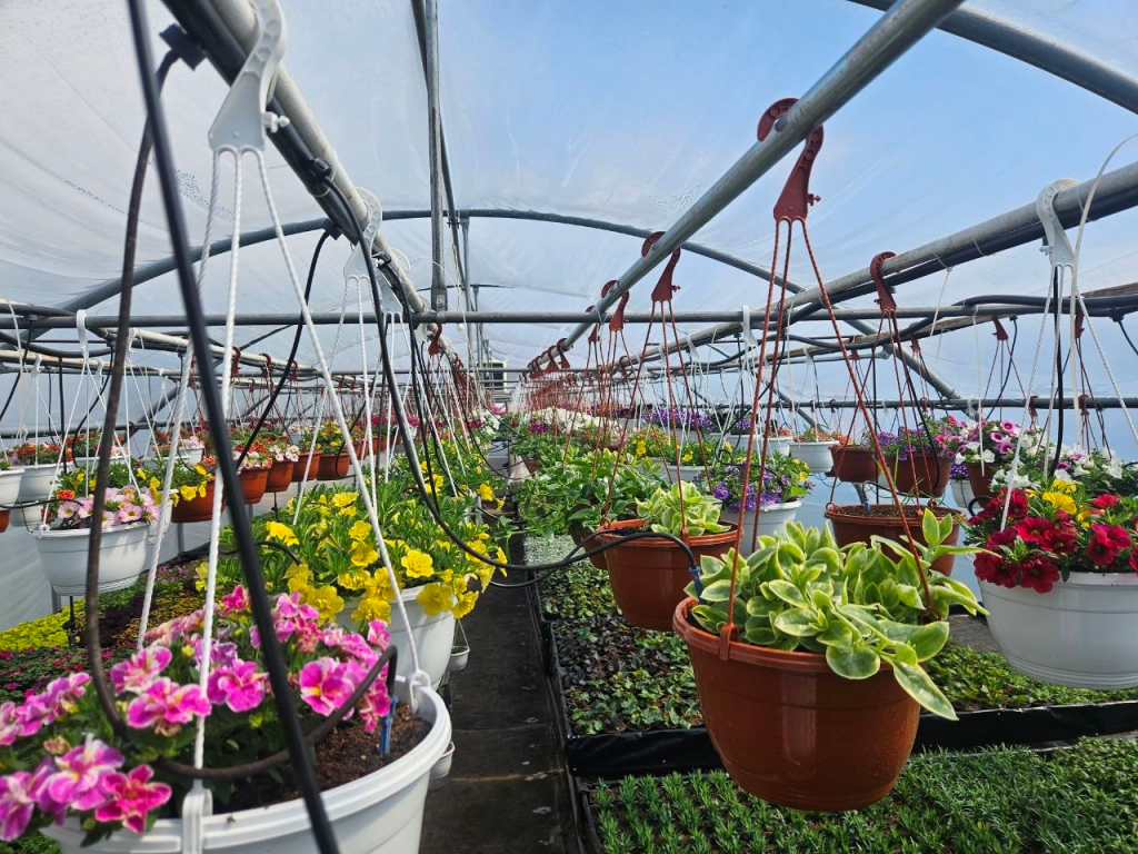 Петуния, сурфиния, бегония, бархатцы, георгины, гвоздика, вербена, гацания — это далеко не весь ассортимент цветов, выращенных здесь.
