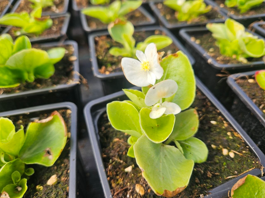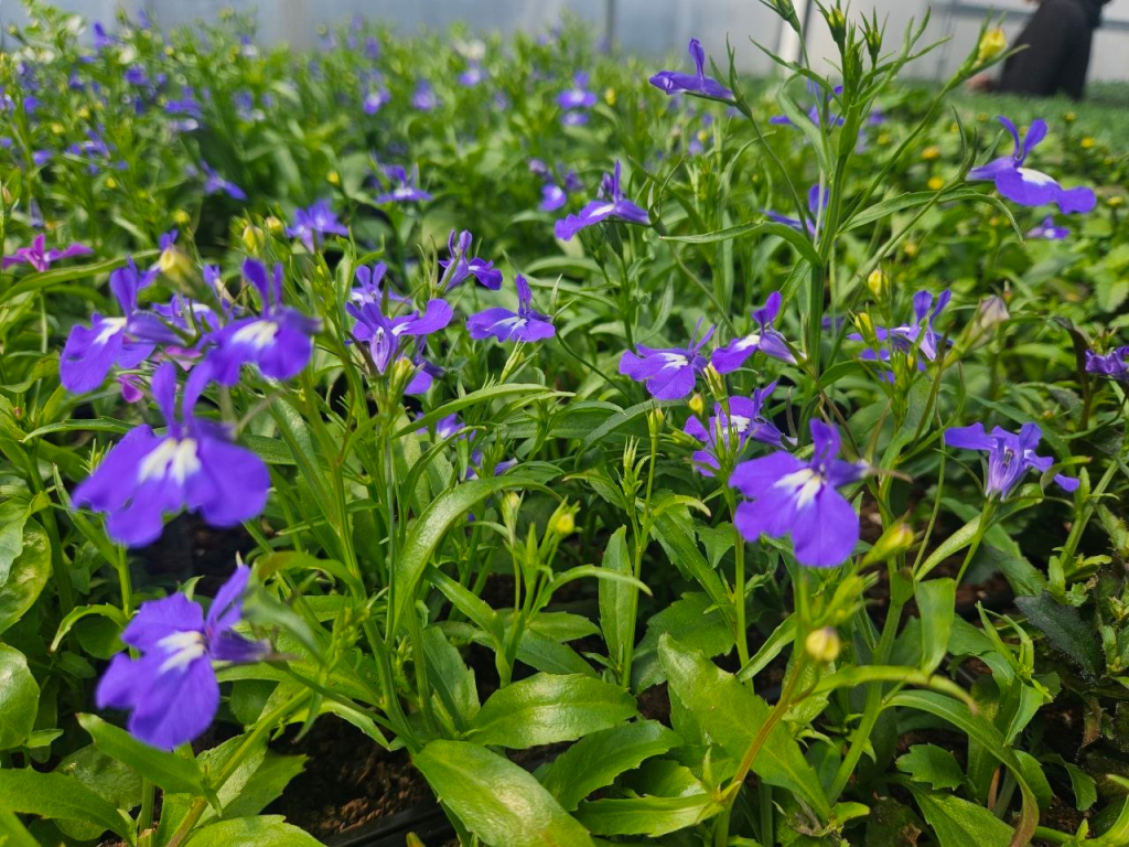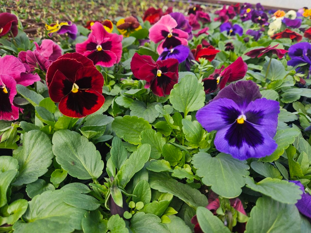 Аккуратные ряды горшочков с множеством зелени и первыми соцветиями поражают масштабами.