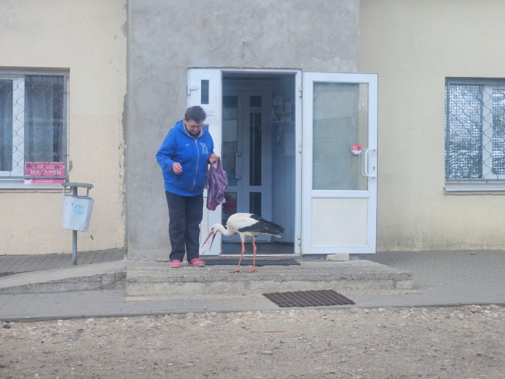 Сельский магазин — место обычное, но в Дуброво всё по-другому. Аист свил гнездо на дереве недалеко от торгового объекта и стал любимцем местных покупателей.